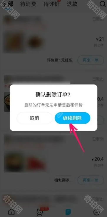 3、这时会出现一个弹窗,点击继续删除后即可删除这个订单