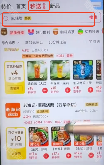 答:在京东秒送外卖页面搜索外卖折扣即可跳转到每日红包领取界面