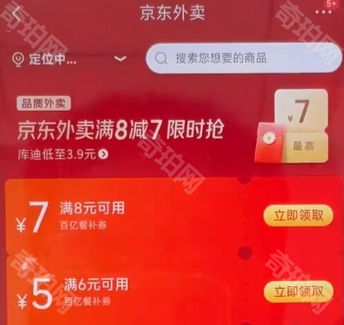 2、输入后点击搜索,这时我们就会来到京东外卖的优惠券领取页面,点击后方的立即领取即可