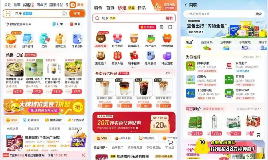2、淘宝和京东不同,淘宝闪购和饿了么为合作关系,实际的下单平台还是饿了么