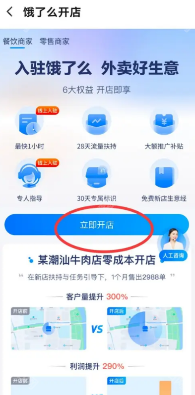 3、最后点击立即开店,填写相关信息并提交后等待审核通过即可