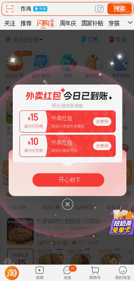 | 淘宝闪购和饿了么的区别 | 外卖红包每天都有吗 |