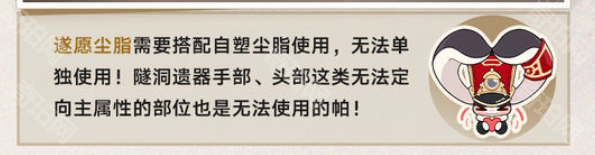 3、特别注意:遂愿尘脂不能单独只用,必须配合自塑尘脂进行使用。也是因此不能指定头部、手部的特定词条。