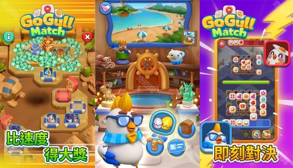 由台湾全本土团队「Loventure Games」开发、结合三消休闲与对战竞技的手机游戏《Go Gull Match》现已推出最新版本,新增与好友、全球玩家即时 PK 的模式。