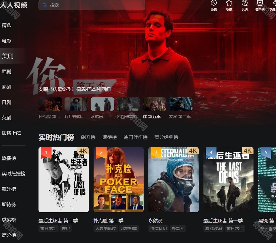 1、网页版支持观看电影、美剧、韩剧、泰剧、日剧和英剧等