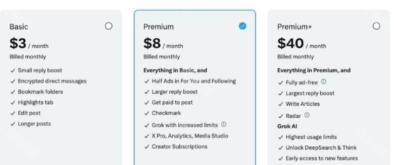 ②升级X平台上的 Premium + Plus用户(40美元)