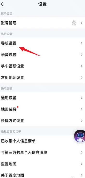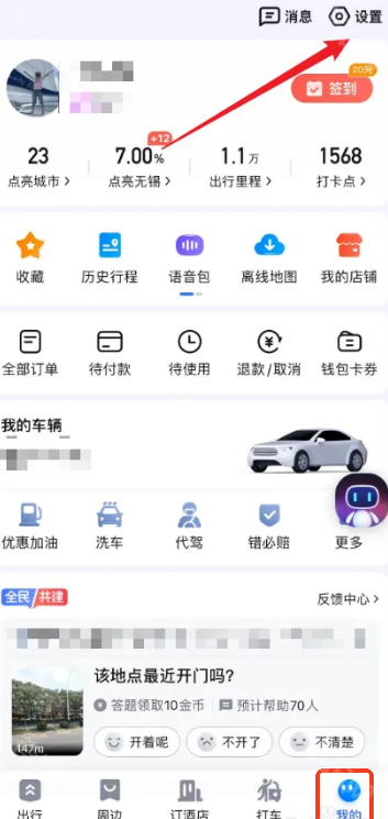 1、首先打开百度导航APP,切换到我的页面,点击右上角的设置