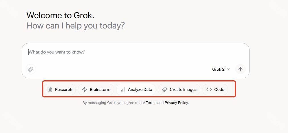 3、Grok能给我们提供许多帮助,网页下方的功能分别为: