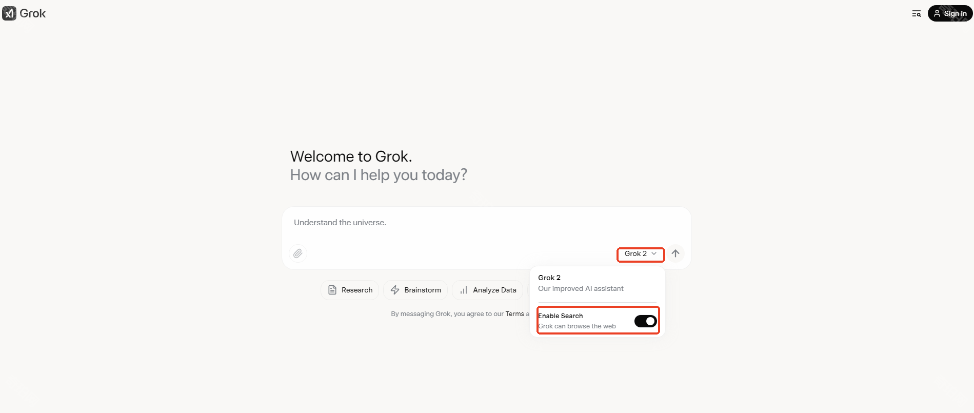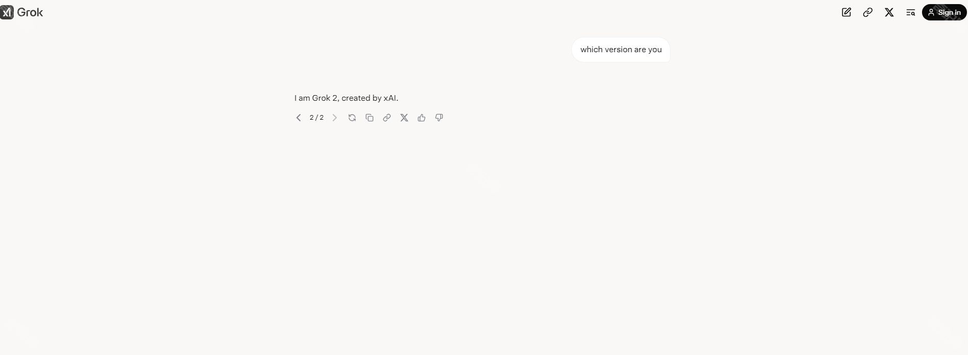 2、目前我们可以免费使用Grok2,Grok3我们需要付费才可以使用,点击右上角的Sign in就能进行用户登录/注册