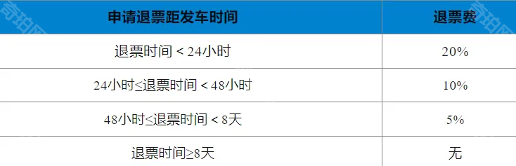 票面乘车站开车时间前不足24小时的按票价20%核收退票费