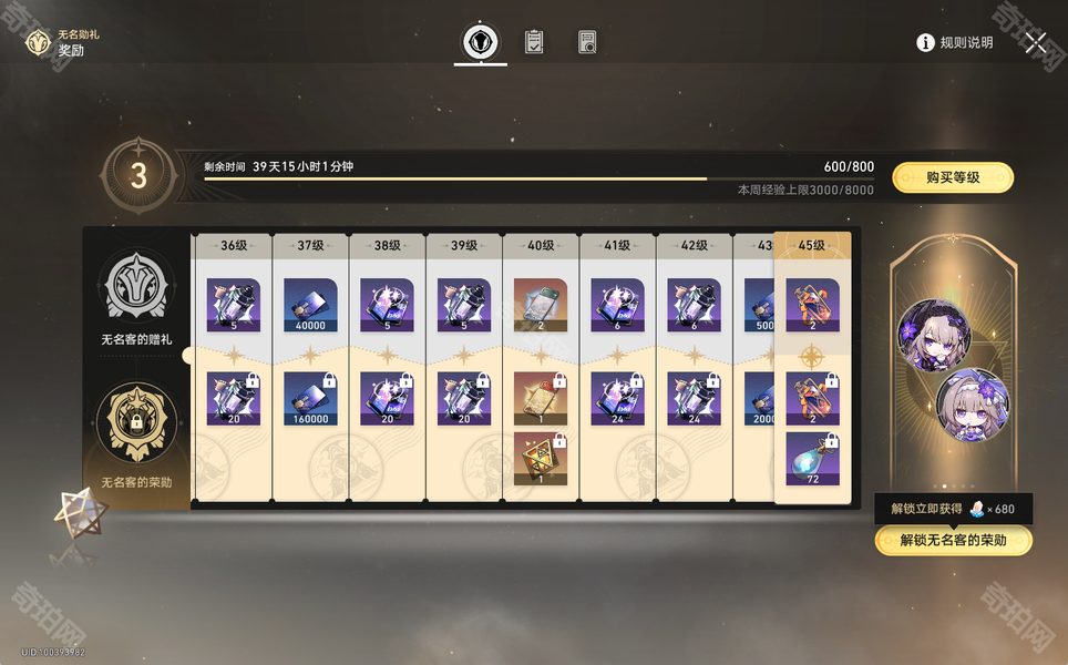 购买大月卡并且达到40级时可以领取