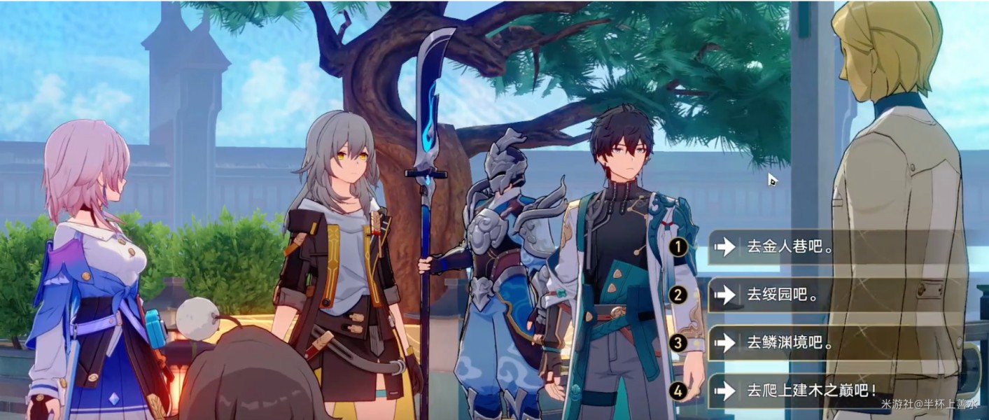 在做主线人的时候遇到两个匹诺康尼的游客,询问推荐的景点,我选择的是金人巷子,其他选项位置在下边;