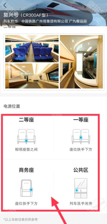 6、在新页面中会告诉我们这辆列车上所有座位的电源插座位置