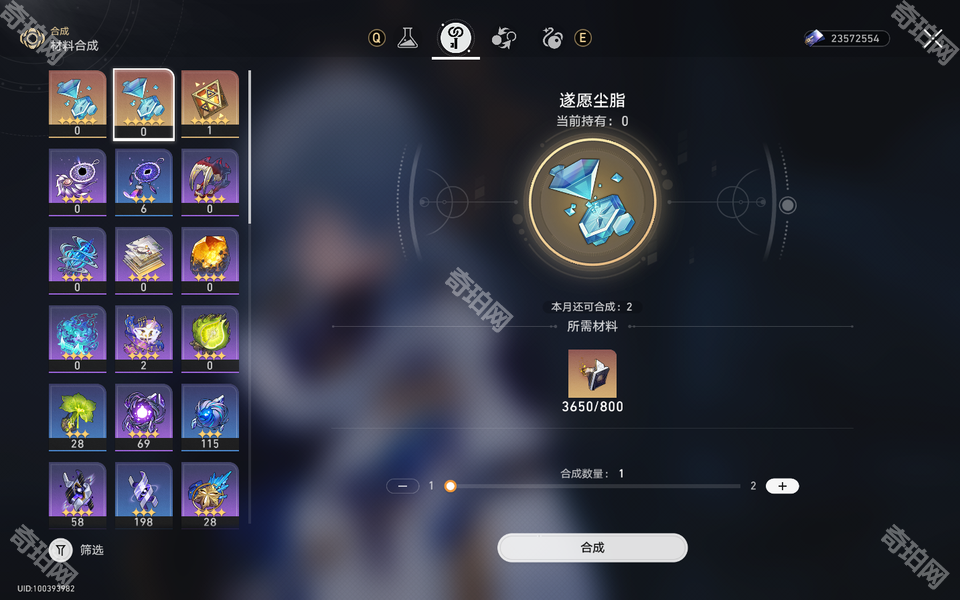 方法一:使用800遗器残骸兑换1个遂愿尘脂(每个月限2个)