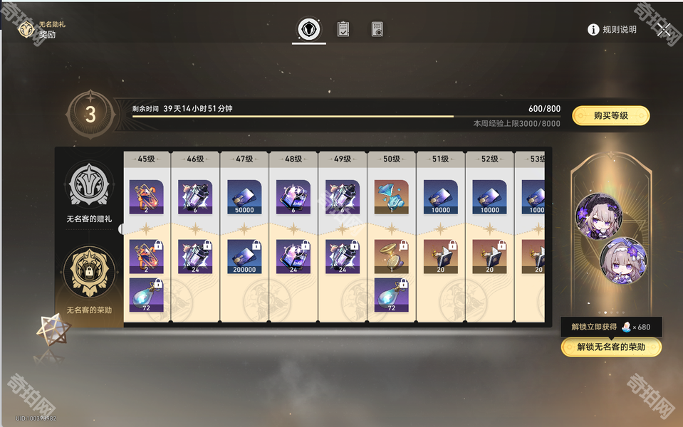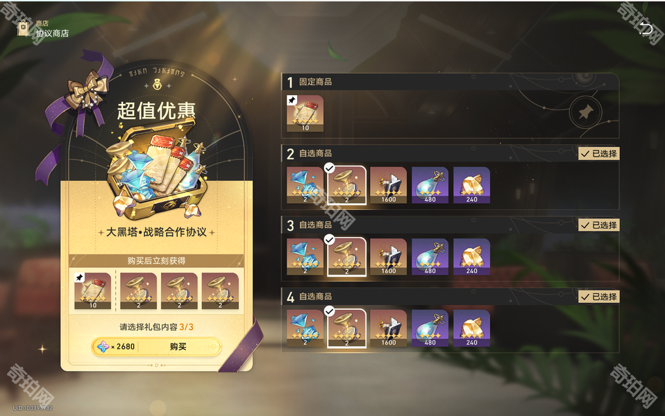 自选道具组合礼包,开拓者可固定获得星轨专票*10,并从如下道具中任选三项(可重复选择):