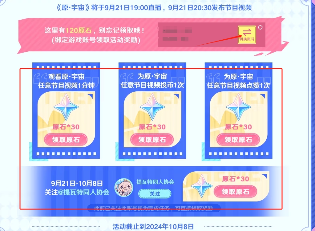 3、接着绑定自己的原神账号完成任务即可获得120原石奖励。