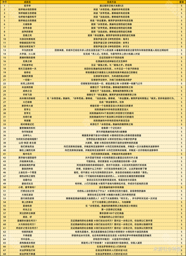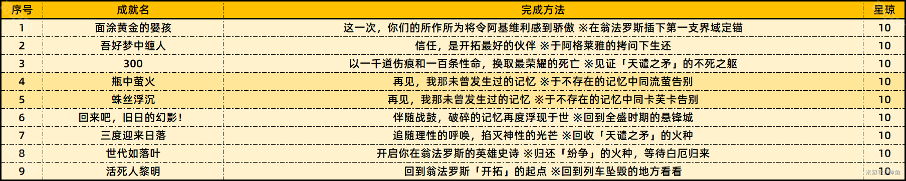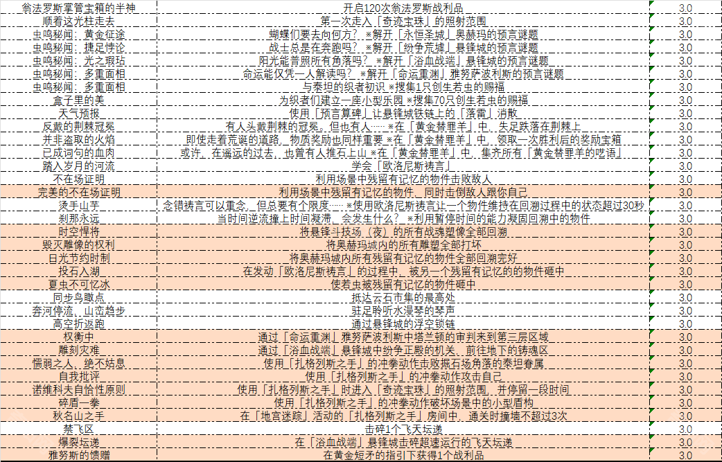注:加深的为隐藏成就