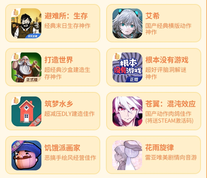 好游快爆付费游戏特卖会折扣游戏有哪些?好游快爆付费游戏特卖会直播期间将有多款游戏开启限时史低特惠(最低1元购),观看直播还将抽取1000元游戏盲盒、游戏免单券、京东卡、苍翼:混沌效应Steam版激活码免费送,那么具体的接下来就跟着小编一起来了解一下好游快爆付费游戏特卖会折扣游戏介绍。