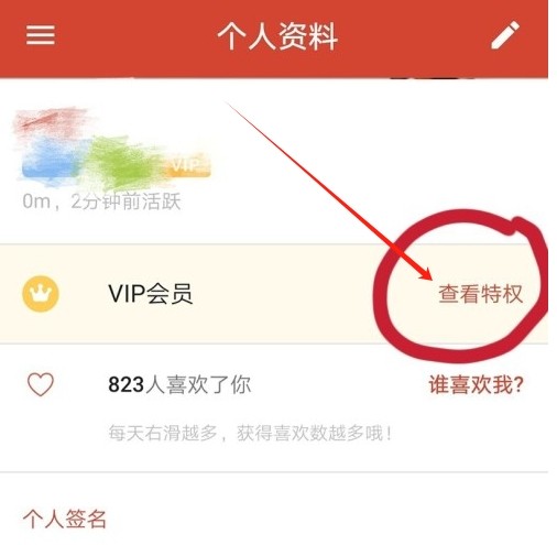 3、然后在个人页面点击vip会员右侧的“查看特权”。