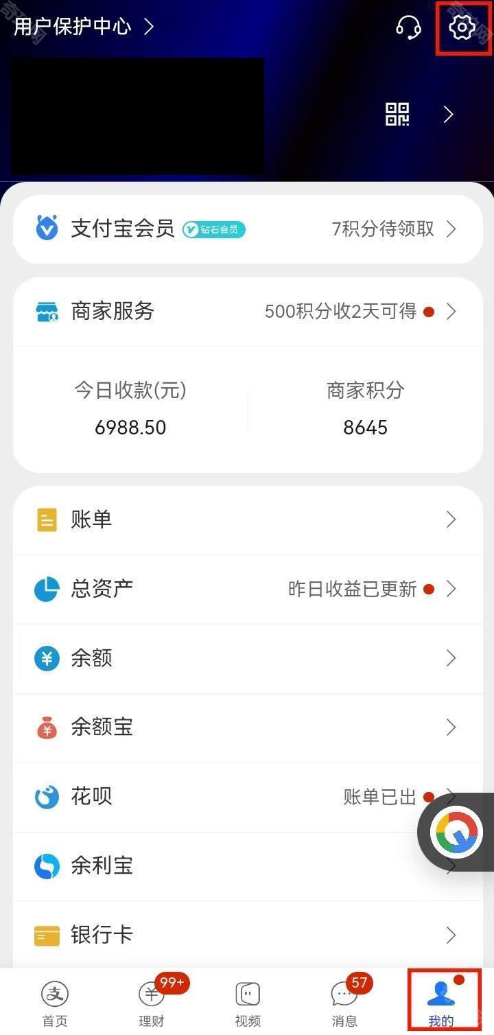 1、首先我们打开支付宝app,切换到我的页面,随后点击右上方的齿轮图标进入设置