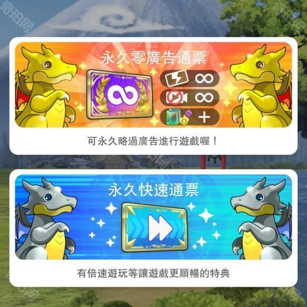 付费道具包括「永久零广告通票」以及「永久快速通票」两种。