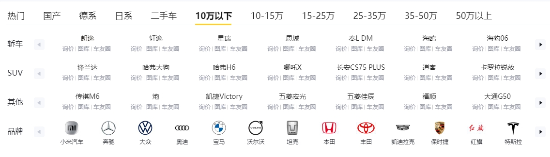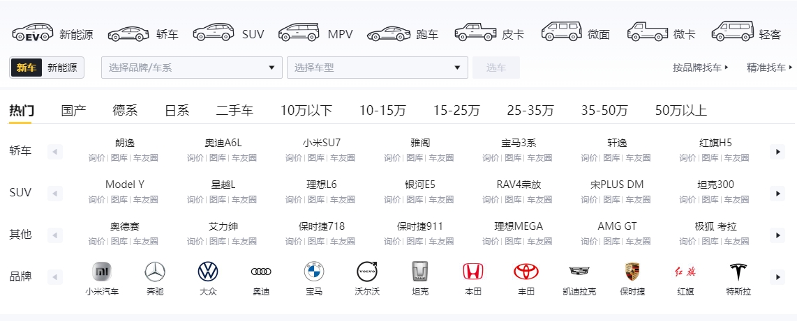 1、首先打开懂车帝官网【https://www.dongchedi.com/】,选择自己想要的车型。