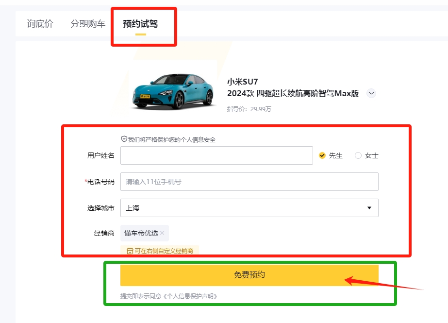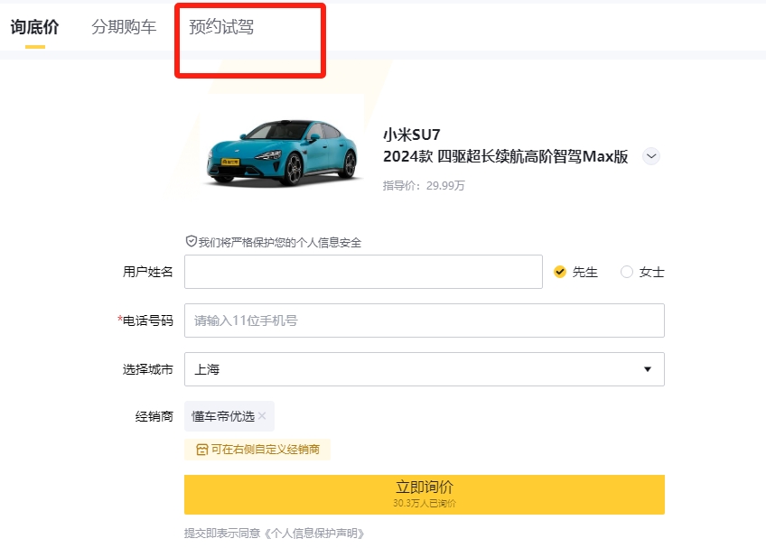 | 官网地址 | 预约试驾 | 看车主成交价 | 取消订单 |