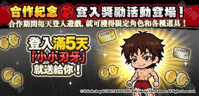 官方表示,活动期间内每天登入游戏都可以获得 1 个签到章,于期间内登入满 5 天就可获得限定 EX 角色「小小刃牙」,此外还将赠送玩家其他道具。