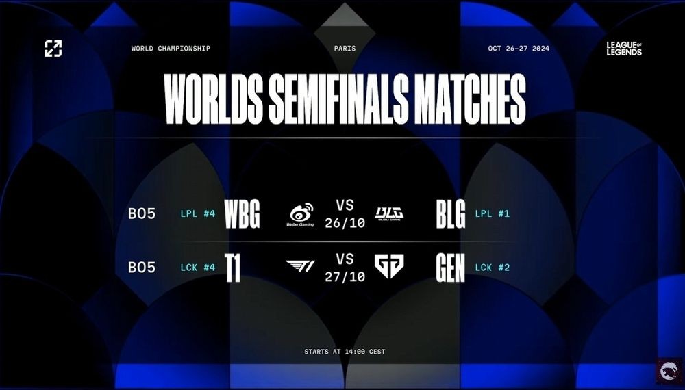 《英雄联盟》2024 赛季世界大赛接下来将在 10 月 26 日进行准决赛,由 WBG 对上 BLG