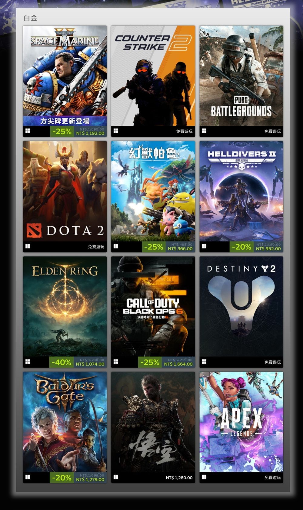 Valve 公布 Steam 2024 年度最佳畅销游戏排行榜,揭露 Steam 平台今年销售总额最高百大畅销游戏,除了不少玩家熟悉的长期热门游戏外,包括《黑神话:悟空》、《幻兽帕鲁》、《绝地潜兵 2》与《使命召唤:黑色行动 6》等作品都在畅销前 12 名的白金榜单上。