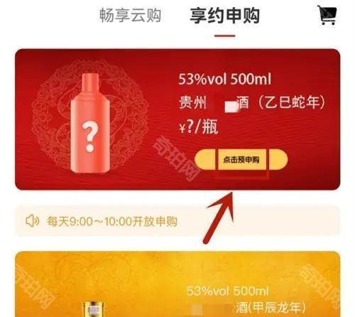 4、在这个页面中我们可以看到乙巳蛇年的茅台,按下点击预申购