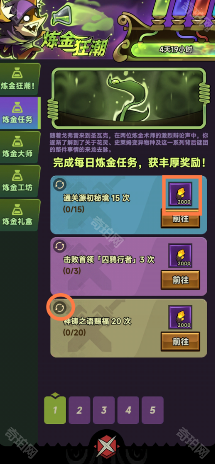 每天会派发6个日常任务,完成当天全部任务后可在“炼金大师”一栏领取丰厚奖励。奖励包含: