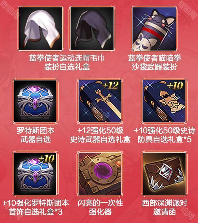 如果新角色是女蓝拳,还能额外获得女蓝拳专属转职奖励:蓝拳使者运动连帽毛巾装扮自选礼盒和蓝拳使者喵喵拳沙袋武器装扮