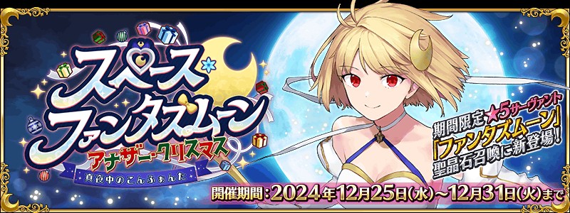 本次「太空・幻想之月 另一个圣诞节 幻想之月 PICK UP 召唤」期间限定卡池于日本时间 2024 年 12 月 25 日 00 : 00 至 12 月 31 日 23 : 59 开放。