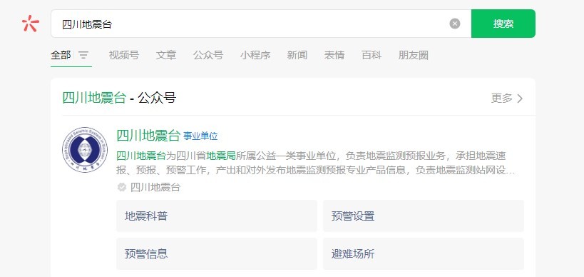 1、打开微信,在顶部搜索框搜索【四川地震台】。