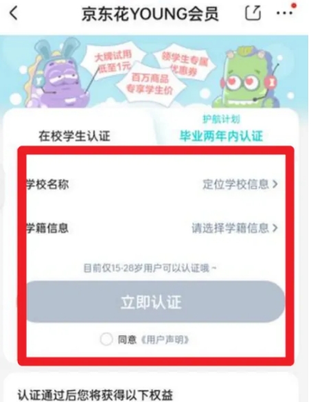 3、输入“学校名称及学籍信息”点击“立即认证”即可认证。