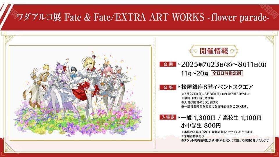 早前 2022 年 7 月于日本举办的 ワダアルコ展 Fate + Fate/EXTRA ART WORKS,决定以「安可」的形式在 7 月 23 日~8 月 11 日于 松屋银座 8 楼活动空间举办,当中会新增包含新作插图等部分展示内容并公开安可场全新主视觉图,详细请至官方网站来进行确认。