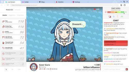 官方指出,玩家可以从 Gura、宝钟玛琳与森美声这三位独特人才中挑选一位,帮助他们增加直播对观众的影响力,并以各种方式想办法来扩大直播声量,以增加观看直播的人数,使其成为最受欢迎的实况主。
