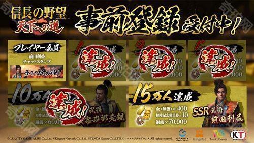 目前《信长之野望 天下之路》事前登录活动仍在进行中,若登录人数达成 15 万人将加码赠送 SSR 武将「前田利益」。
