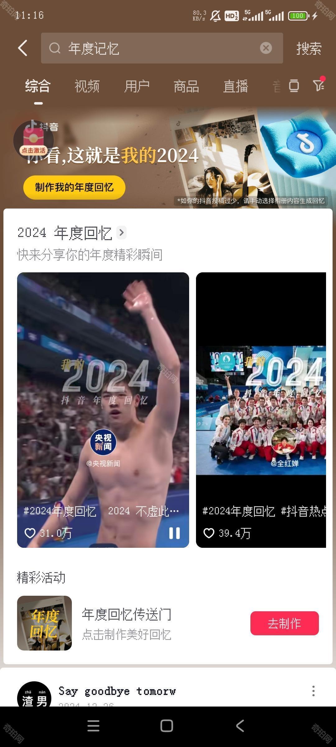 答:在App中搜索年度回忆,点击制作我的年度回忆即可