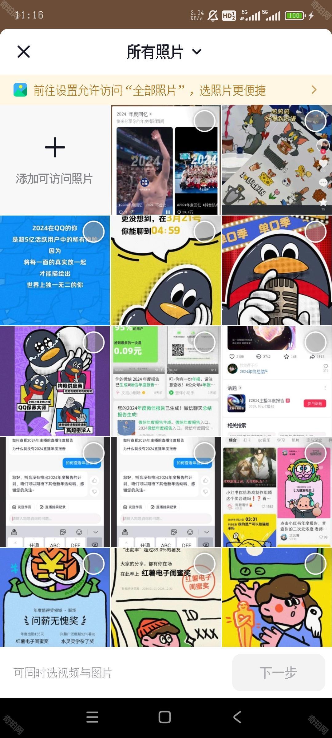 3、选择想要使用的图片后点击下一步即可开始生成年度回忆