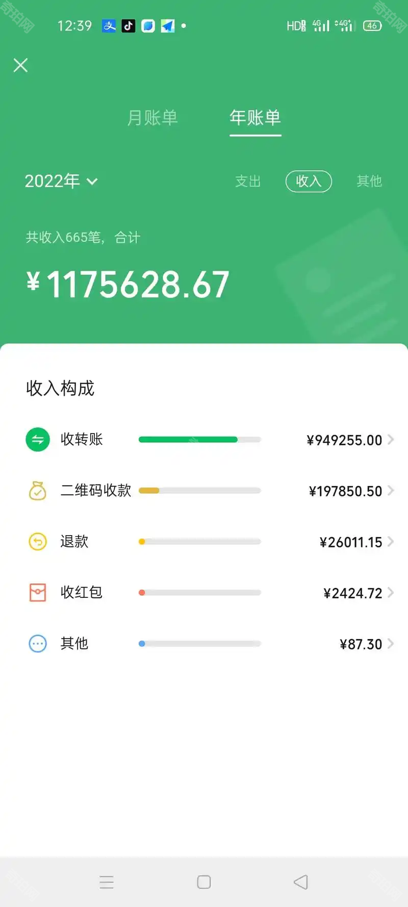2、我们比较常用的微信支付会提供年度账单,可以查看到自己的收入和支出构成等数据