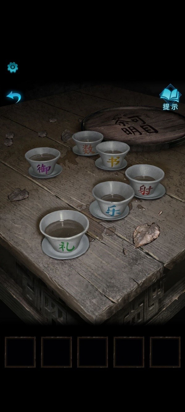3、大家外出之后见到桌子上有杯子,就可以去墙脚将盛好的香灰倒进茶壶中即可领取香灰水,倒进杯子,就可以见到古代礼仪六艺,要注意颜色。
