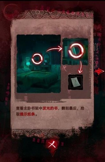 1、首先我们查询卧室中的书,随后在书架上能够找到一个发光的树,从中得到一个提醒纸条。