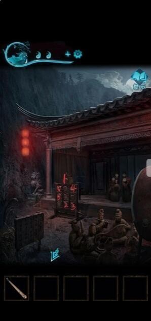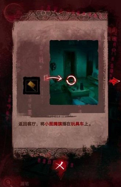 3、用旗帜用来开门,打开之后继续收集东西,;里面有一个锁是大凶以内的,玩家需要依据指南来打开,最终看到一个招财猫。