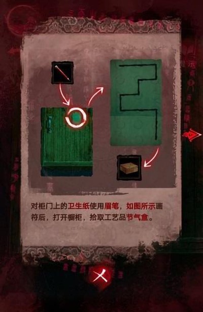 27、最后我们应用眉笔对箱门卫生纸画符,依照如图所示的款式绘画即可打开橱柜,打开后即可获得艺术品节令盒。