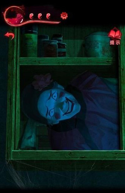 11、妹子在下文拿拐棍将佛头移动至机关上,前去外边将树枝里的皮影剪下。
