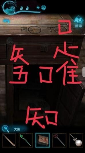 6、妹子看福字部位,依据小人指的字即可领取密码病生老生嫁,随后男人依据密码开启下边木柜即可领取瓷勺。