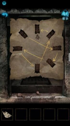 18、最后我们回到圣坛,进山多爬几回上来,将图粘在二十四节气图上,即可得出答案,再解除下边滚轮,获得招魂令,放进圣坛上即可完成过关。