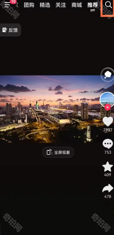 1、打开抖音APP,点击右上方的放大镜图标,搜索抖音电商年度报告